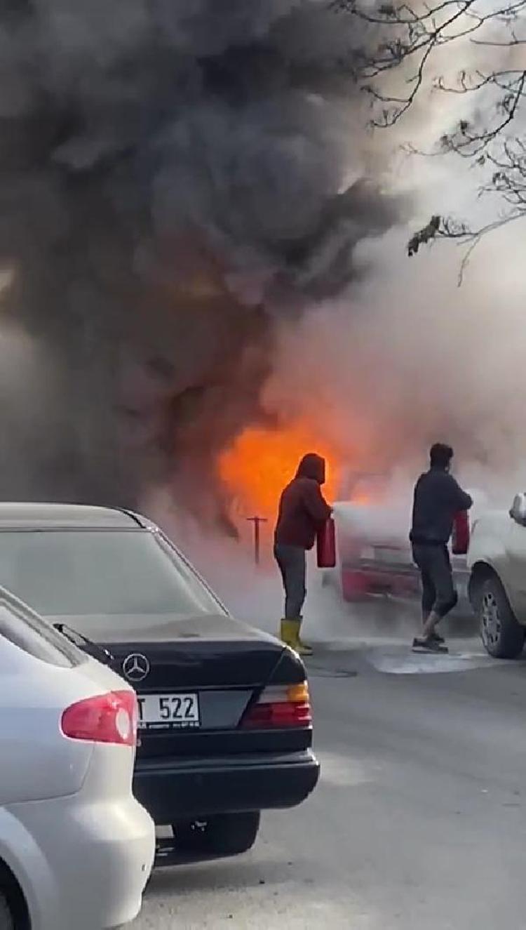 Çevredekiler yangına müdahale etmeye çalışırken aynı zamanda itfaiye ekiplerine bilgi verdi.