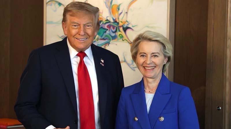 Avrupa Birliği (AB) Komisyonu Başkanı Ursula von der Leyen, ABD Başkanı Donald Trump ile yarın İskoçya'da ticaret görüşmeleri için bir araya geleceklerini duyurdu.
