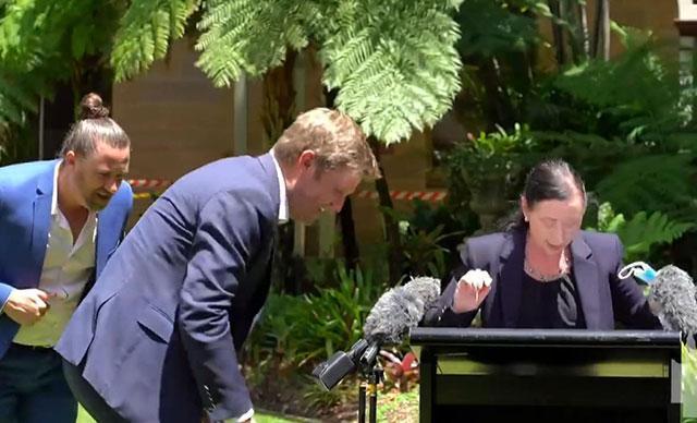 Avustralya’da Covid-19 durumuna ilişkin basın açıklaması yapan Queensland Eyalet Sağlık Bakanı Yvette D'ath’ın üzerine tırmanan bir örümcek bakanın açıklamasını böldü.