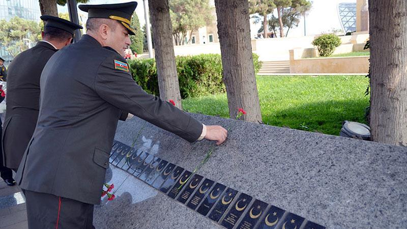 Azerbaycan Savunma Bakanlığı’ndan bir grup asker Türk şehitliğine çelenk koydu