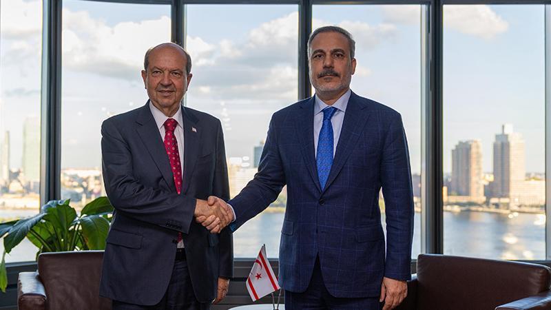 Dışişleri Bakanı Hakan Fidan, 80'inci BM Genel Kurulu için bulunduğu New York’ta, Kuzey Kıbrıs Türk Cumhuriyeti Cumhurbaşkanı (KKTC) Cumhurbaşkanı Ersin Tatar ile bir araya geldi.