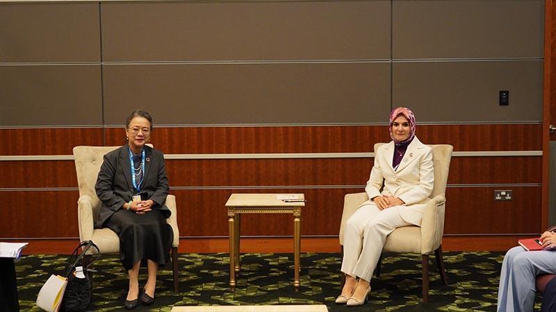 Aile ve Sosyal Hizmetler Bakanı Mahinur Özdemir Göktaş, 2’nci Dünya Sosyal Kalkınma Zirvesi'ne katılmak üzere gittiği Katar’ın başkenti Doha’da Birleşmiş Milletler (BM) Genel Sekreter Yardımcısı ve BM Asya ve Pasifik Ekonomik ve Sosyal Komisyonu İcra Sekreteri Armida Salsiah Alisjahbana ile bir araya geldi.