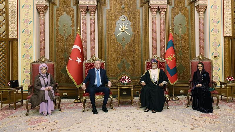 Cumhurbaşkanı Recep Tayyip Erdoğan, resmi temaslarda bulunmak üzere Körfez turunun son ülkesi Umman'ın başkenti Maskat'a gitti. Umman Hava Kuvvetleri’ne ait uçaklar, Özel Sultanlık Havaalanı'na inişinde Cumhurbaşkanı Erdoğan'ın uçağına eşlik etti.