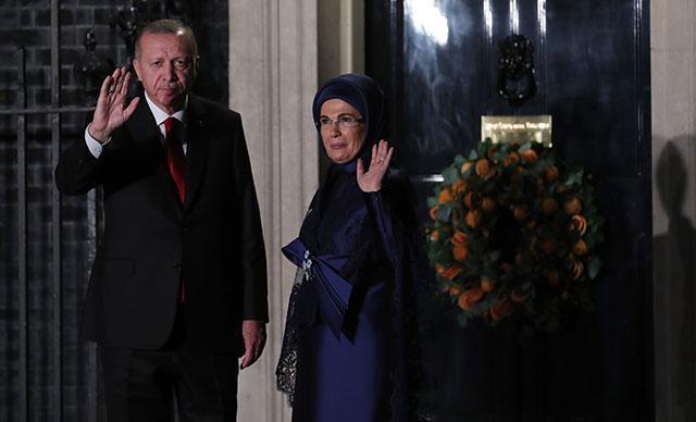 Cumhurbaşkanı Recep Tayyip Erdoğan ve eşi Emine Erdoğan, Suriye konulu Dörtlü Zirve’nin ardından, İngiltere Başbakanı Boris Johnson’ın NATO liderleri onuruna verdiği akşam yemeğine katıldı.