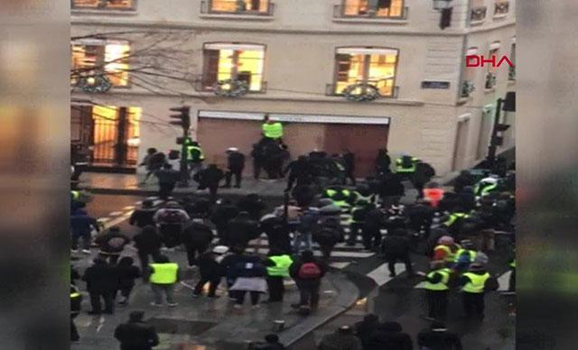 Fransa başkenti Paris’te Cumartesi günü 1,500’ün üzerinde eylemcinin katıldığı gösteriler devam ederken, sosyal medyada yer alan görüntülerde eylemcilerin Paris’te bir giyim mağazasını yağmaladığı görüldü.