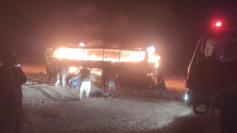 Afganistan'ın batısındaki Herat vilayetinde, İran'dan sınır dışı edilen göçmenleri taşıyan bir yolcu otobüsü, bir kamyon ve motosikletle çarpışması sonucu alev aldı. İçişleri Bakanlığı Sözcüsü Abdul Mateen Qani, kazada 19'u çocuk 79 kişinin yaşamını yitirdiğini açıkladı.