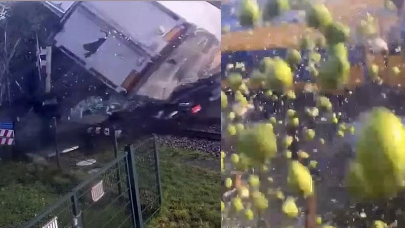 Hollanda’nın Gelderland kentindeki Meteren köyünde, hemzemin geçitten geçerken mahsur kalan armut yüklü TIR’a, yolcu treni çarptı. Önceki gün meydana gelen kazada, 5 kişinin yaralandığı bildirildi.