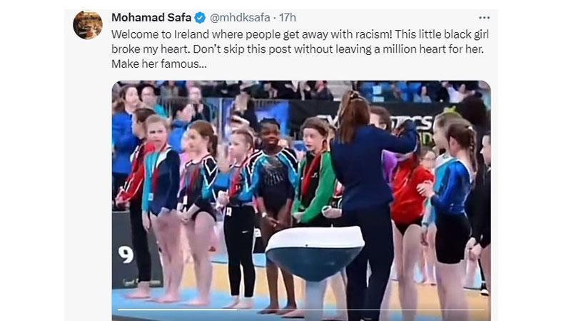 Sosyal medyada milyonlarca kez izlenen bir videoda, İrlanda’da 2022 yılında yapılan jimnastik oyunlarında çocuk jimnastikçilere madalya verilirken sırada bulunan siyahi bir çocuğun pas geçilmesi ‘İrlanda’da ırkçılık’ yapıldığı konusunda sert eleştirilere neden oldu. Bunun üzerine dün açıklama yapan Jimnastik İrlanda federasyonu dolaşımdaki videodan bilgileri olduğunu, bu konuda şikayet aldıklarını ve Ağustos ayında bu konuyu çözüme kavuşturulduğunu duyurdu.