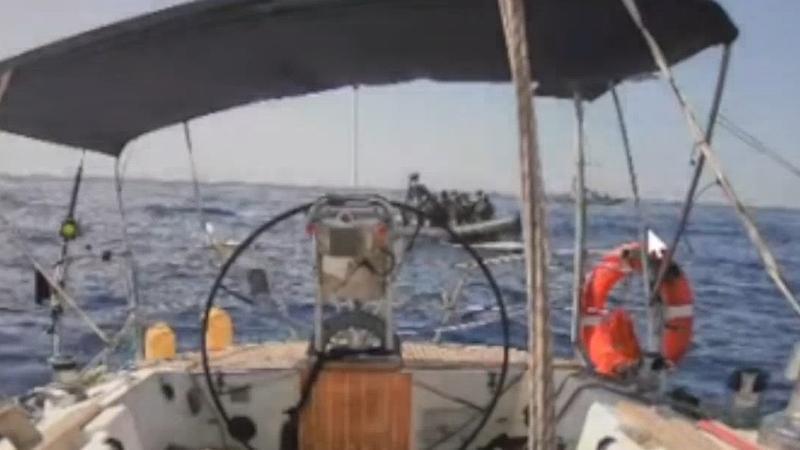 'Marinette' teknesinden yapılan canlı yayında İsrail donanmasından bir geminin tekneye yanaştığı görüldü. Baskının ardından gemi ile bağlantı kesildi. Teknede 4'ü Türk, 6 kişi bulunuyordu.