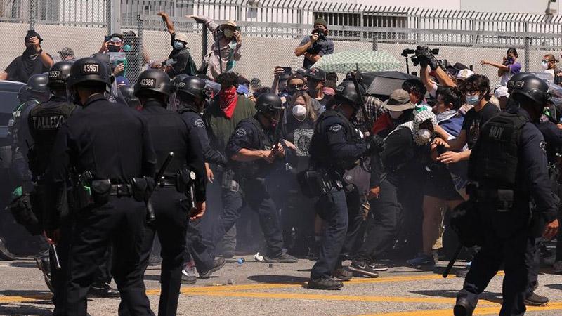 ABD'de Göçmenlik ve Gümrük Muhafaza Dairesi (ICE) tarafından gözaltına alınan düzensiz göçmenlere destek amacıyla düzenlenen gösterilere karşı Los Angeles'ta görevlendirilen Ulusal Muhafızlar, bazı sivilleri geçici olarak gözaltına aldı.