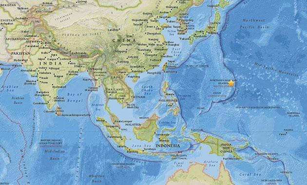 Merkezi, Guam Adası'ndaki Hagatna kentine 341 kilometre, Mariana Adaları üzerindeki Pagan kentine 205 kilometre ve Japonya'nın Okinawa Adası'na da 2,071 kilometre uzaklığında belirlenen depremin derinliği de 156 kilometre olarak ölçüldü.