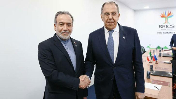Rusya Dışişleri Bakanlığı'ndan yapılan açıklamaya göre, Dışişleri Bakanı Sergey Lavrov ve İranlı mevkidaşı Abbas Arakçi, Brezilya'nın ev sahipliğinde Rio de Janeiro kentinde düzenlenen 17’nci BRICS Liderler Zirvesi kapsamında bir araya geldi. Bölgesel ve uluslararası konuların ele alındığı görüşmede, Lavrov, İsrail ve ABD'nin Birleşmiş Milletler (BM) Şartı'nı ihlal ederek İran topraklarına ve Uluslararası Atom Enerjisi Ajansı’nın (IAEA) denetimdeki nükleer enerji altyapı tesislerine yönelik saldırılarını kınadı.