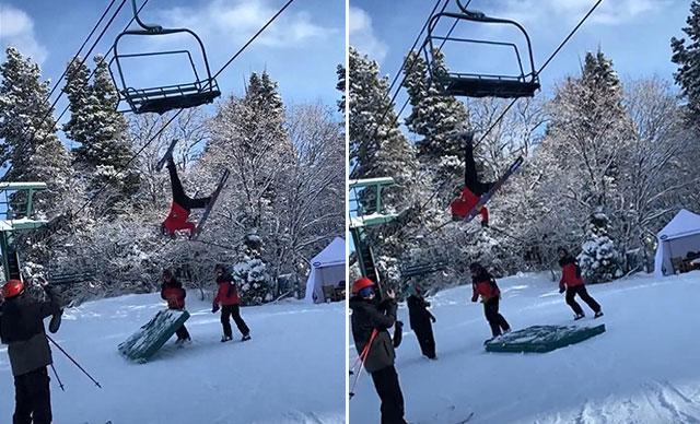 Rusya'nın en popüler kayak merkezlerinden biri olan Şeregeş'e giden bir grup kayakçının kayak keyfi kabusa döndü. Kayak takımı ile fünikülerden birine binen acemi kayakç asılı kaldı. Acemi kayakçının imdadına arkadaşları yetişti. Fünikülerden baş aşağı asılı kalan kişiyi güvenle indirmek için yere bir mat serildi. Baş aşağı düşen kayakçının görüntüleri sosyal medyada viral oldu.
