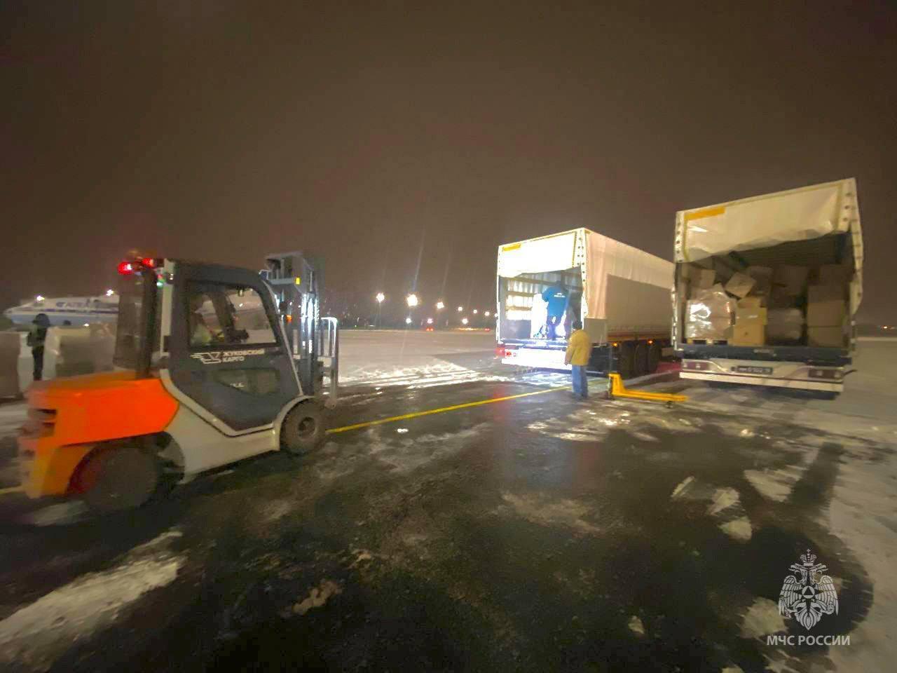 EMERCOM, 15 tonluk insani yardım içinde gıda ürünleri, bebek maması, uyku tulumları, hijyen ürünleri ve kıyafetler olduğunu ifade ederek yardımların Mısır Kızılayı tarafından dağıtılacağını belirtti.