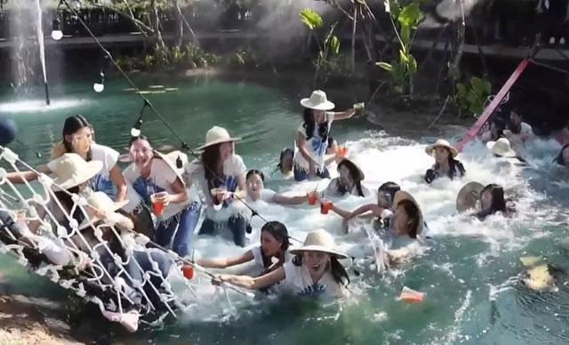Tayland'da her yıl gerçekleştirilen "Miss Tayland" yarışmasının ikinci gününde şapka ve yüz koruması takan 30 güzellik kraliçesi, poz vermek için bir köprüye çıktı. Köprünün çökmesiyle sular altında kalan güzeller zor anlar yaşadı.