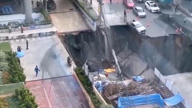 Tayland'ın başkenti Bangkok'un Dusit bölgesinde yer altı inşaatı devam eden bir yolda yerel saatle 07.00'de çökme meydana geldi. Yetkililer, yolda yaklaşık 30 metre genişliğinde ve 50 metre derinliğinde çukur oluştuğunu ve bir aracın çukura düştüğünü belirtti.