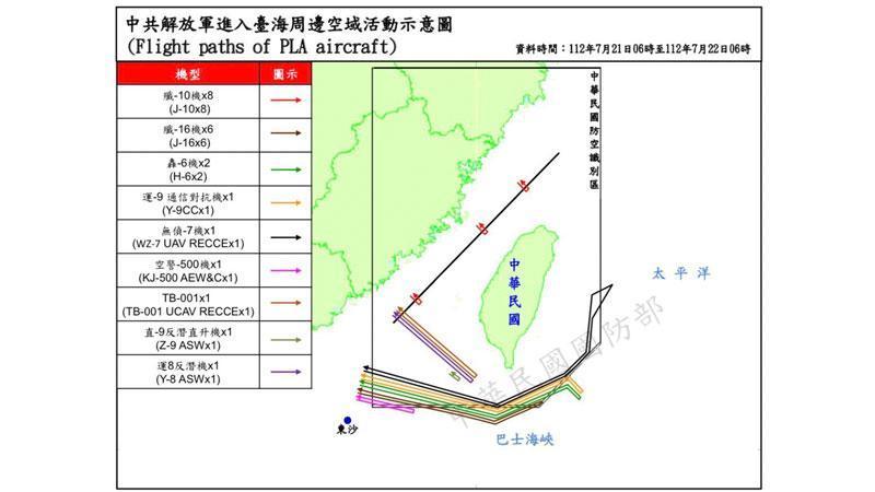 Tayvan Savunma Bakanlığı’ndan yapılan açıklamada, “Bugün sabah 06.00 itibariyle Tayvan çevresinde 37 Çin Halk Kurtuluş Ordusu uçağı ve 7 Çin Halk Kurtuluş Donanması gemisi tespit edilmiştir. Tayvan Silahlı Kuvvetleri durumu izledi ve bu faaliyetlere karşılık vermek üzere uçakları, donanma gemilerini ve karada konuşlu füze sistemlerini görevlendirdi” denildi.