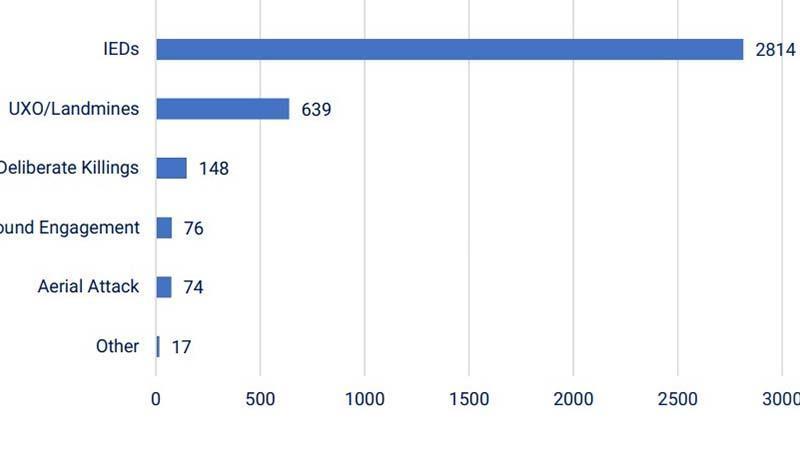 Afganistan'daki Birleşmiş Milletler Yardım Misyonu (UNAMA) raporunda, sivil kayıplarda genel bir düşüş olmasına rağmen el yapımı patlayıcıların (IED), Afganistan'da önemli bir endişe kaynağı olmaya devam ettiği vurgulanarak, 15 Ağustos 2021 ile 30 Mayıs 2023 arasındaki 3 bin 774 sivil kaybın dörtte üçünün el yapımı patlayıcıların neden olduğu belirtildi.