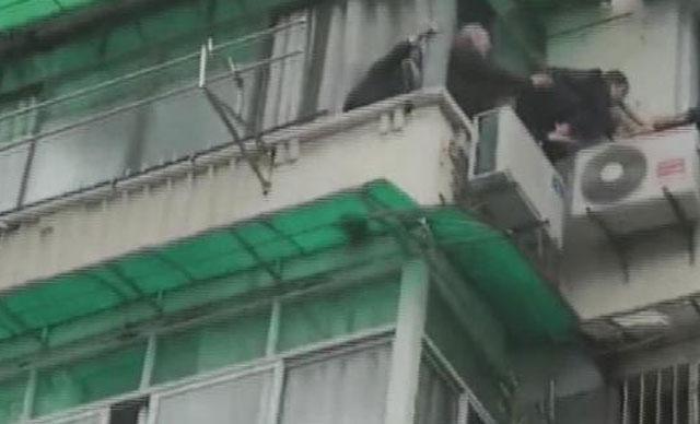 Amatör kameralara yansıyan olay, Zhejiang eyaletinin Hangzhou şehrinde 4 katlı bir binanın en üst katında yaşandı.