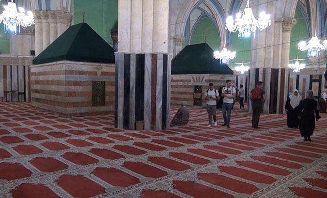 Gelenlere cami hakkında bilgiler veren kadın görevli Yasmin El Caberi “Biz şu anda Harem İbrahim-üş Şerifteyiz. Müslümanların 4'üncü kutsal mekânı oluyor. Cami binası 2 bin yıllık, altındaki mağaranın yaşı ise 5 bin yıl. Yani Hz. İbrahim zamanından. Hz. İbrahim caminin altındaki mağarada defnedilmiş. Hz İbrahim ile eşi Sare, Hz İshak ile eşi Rıfka ve Yahudilerin işgal ettiği bölümde Hz Yakup, eşi Laika ve Hz Yusuf'un makamları camide bulunuyor. Toplamda mağarada 7 kabir ve camide 7 makam bulunuyor. Mağaranın giriş kapılarından birisi burası. Mağara buradan görülmez, çünkü yaklaşık 18 metre derinlikte. Hemen şu kapağın altında alüminyum ve bakırdan yapılı bir sepet içinde 4 adet cam bardak bulunuyor. Bunlara her gün su ve zeytinyağı ile pamuk fitil konulup yakılıyor. 7-8 saatte bir değiştiriliyor ve sürekli yanmaları sağlanıyor. Bir demir çubukla sepet bağlanmış, ateşi yakacakları zaman yukarı çekiyorlar ve işlemden sonra tekrar indirip yerlerine koyuyorlar. Bunu ilk olarak Fatımiler yakmış ve bu şimdiye kadar böyle gelmiş." dedi.