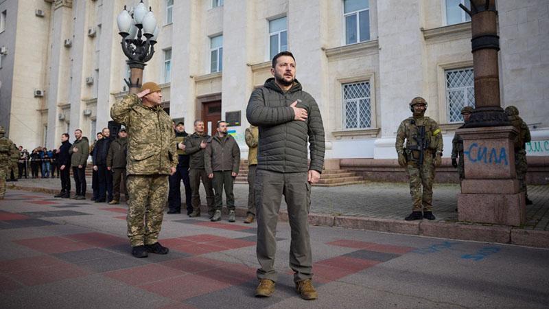 Herson bölgesini Ukrayna’ya kazandırdığınız için sizlere teşekkür etmek istiyorum. Silahlı Kuvvetlerimizi, devletimizi, bayrağımızı iade ediyoruz” dedi.