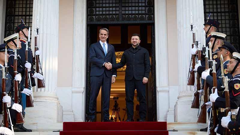Ukrayna Devlet Başkanı Volodimir Zelenskiy, Yunanistan'ın başkenti Atina'ya yaptığı resmi ziyaret kapsamında Başbakan Kiryakos Miçotakis ile görüştü. Zelenskiy, sosyal medya hesabından yaptığı paylaşımda, “Rusya'nın işgalinin ilk günlerinden itibaren Yunanistan, barışın mümkün olabileceği koşullara ulaşabilmemiz için Avrupa ve diğer ortaklarla çalışarak bize yardımcı oldu.