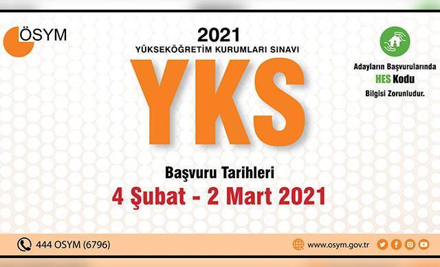 Halis Aygün, Twitter hesabından yaptığı açıklamada, 26-27 Haziran 2021 tarihlerinde gerçekleştirilecek 2021-YKS başvuru kılavuzunun yayımlandığını, başvuruların 4 Şubat-2 Mart 2021 tarihleri arasında yapılabilyeceğini belirtti. ÖSYM’nin internet sitesinden yapılan duyuruda ise 2021 YKS kapsamında, 26 Haziran'da Temel Yeterlilik Testi (TYT), 27 Haziran’da Alan Yeterlilik Testleri (AYT), öğleden sonra oturumunda Yabancı Dil Testi (YDT) sınavının uygulanacağı belirtildi. Açıklamada, "Sınava başvuruda HES kodu bilgisi alınacağından adayların, sınava başvuru işlemi yapmadan veya başvuru için başvuru merkezlerine gitmeden önce HES kodunu edinmiş olmaları gerekmektedir" denildi.