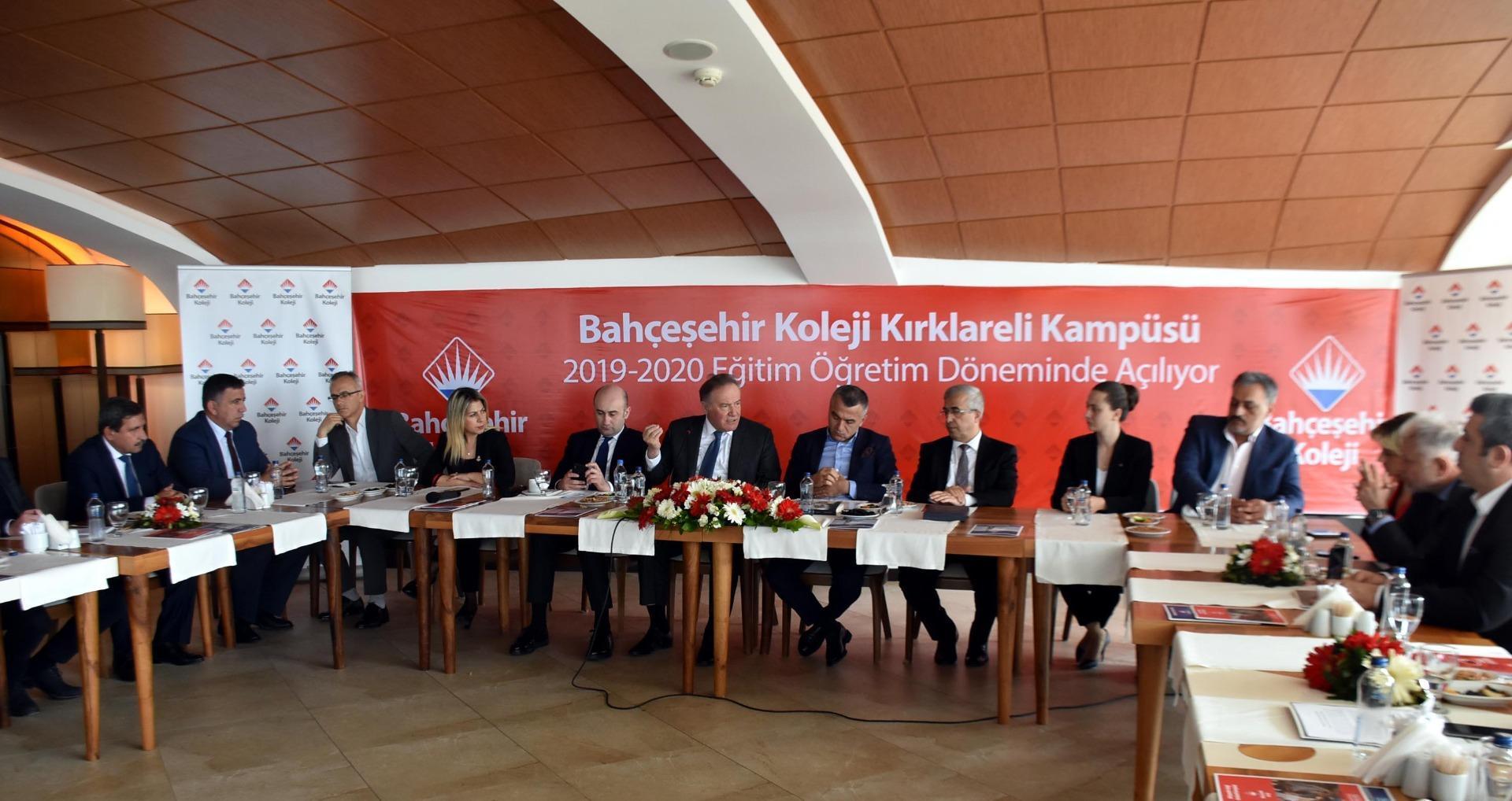 Kırklareli'nde açılacak Bahçeşehir Koleji Kırklareli Kampüsü'nün tanıtım toplantısına Kırklareli Valisi Osman Bilgin, Kırklareli Belediye Başkanı Mehmet Siyam Kesimoğlu, Kırklareli Üniversitesi Rektörü Prof. Dr. Bülent Şengörür, Bahçeşehir Uğur Eğitim Kurumları Başkanı Enver Yücel, İcra Kurulu Başkanı Hüseyin Yücel , protokol üyeleri, okul müdürleri öğretmenler katıldı.