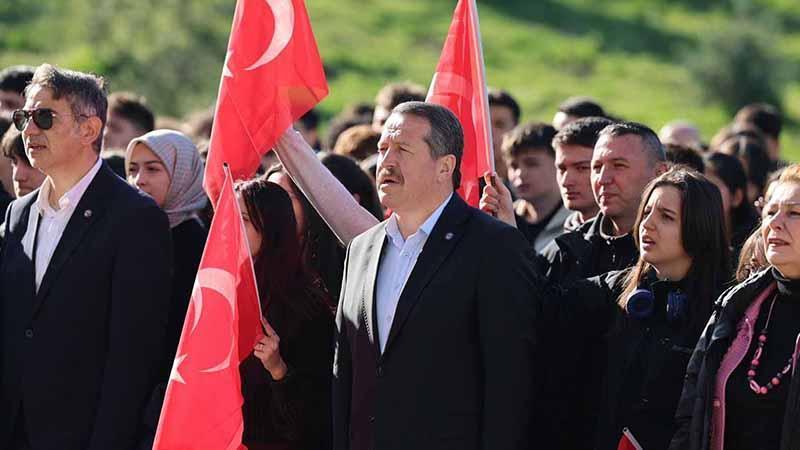Genel Başkan Yalçın, Genel Sekreter Talat Yavuz ve Genel Başkan Yardımcısı Ramazan Çakırcı ile birlikte ilk ders zili öncesi düzenlenen bayrak törenine katılarak İstiklal Marşı’nı öğrencilerle okudu.