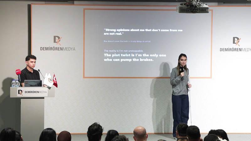 Demirören Medya ve Teknoloji Mesleki ve Teknik Anadolu Lisesi, öğrencilerin yapay zeka ve girişimcilik ekosistemine yönelik daha fazla bilgi sahibi olmaları için 'Ön Yargısız Yapay Zek ve Girişimcilik' konferansı düzenledi. Demirören Medya Center'daki Erdoğan Demirören Konferans Salonu'nda yapılan etkinliğe hikayesiyle örnek olan görme engelli girişimci Zülal Tannur, konuşmacı olarak katıldı.
