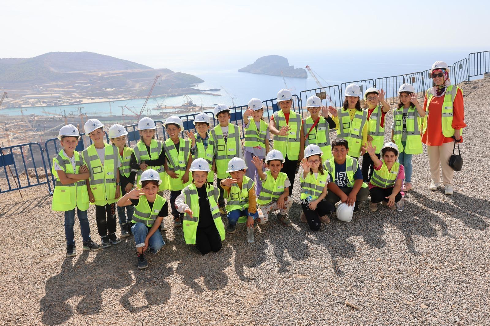 Gülnar ilçesindeki ilk ve orta dereceli okullardan 100’den fazla öğrencinin yaptığı saha turları, şantiyedeki güvenlik kuralları hakkında bilgi verilmesiyle başladı. Çocuklara büyük boyutlu ekipmanları taşıyan gemilerin yanaştığı Doğu Kargo Terminali, dünyanın en güçlü paletli vinci Liebherr LR 13000 ve NGS'nin güvenliğinde büyük önem teşkil eden bir tesis olan itfaiye birimi gösterildi. Akkuyu NGS itfaiyecileri çocuklara, çeşitli itfaiye ekipmanlarını göstererek, itfaiyecilerin çalışmaları, başarıları ve orman yangınlarının çıktığı dönemde Mersin itfaiyesine verdikleri destek hakkında bilgi verdiler. Çocuklar deniz seviyesinden 200 metre yükseklikteki seyir tepesinden inşaat halindeki güç ünitelerini görme fırsatını da yakaladılar.