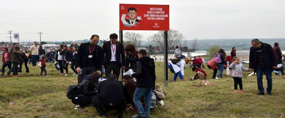 Mektebim Çorlu Kampüsü öğrencileri, 15 Temmuz darbe girişimi sırasında şehit edilen Astsubay Ömer Halisdemir adına Hatıra Ormanı oluşturup bin fidan dikti.