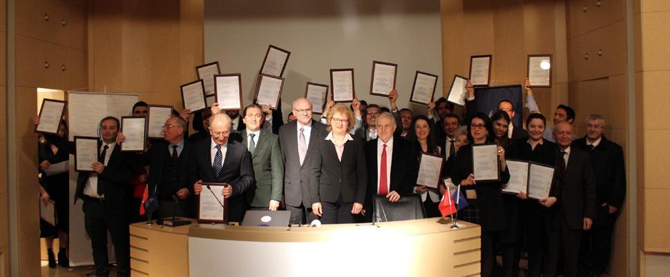 Törende açılış konuşmalarının ardından akreditasyon alan İGÜ bölümlerinin başkanları tek tek sahneye çıkarak sertifikalarını aldı.