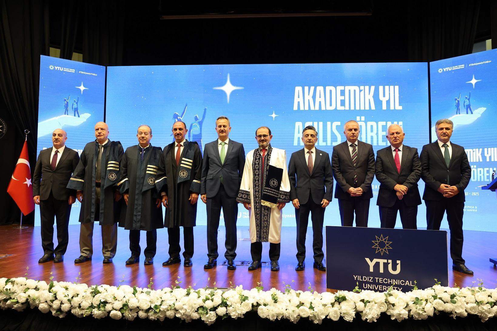 Yıldız Teknik Üniversitesi Davutpaşa Kongre ve Kültür Merkezi’nde gerçekleştirilen 2025-2026 Akademik Yılı Açılış Töreni, saygı duruşu ve İstiklal Marşı’yla başladı. Ardından program YTÜ Sanat ve Tasarım Fakültesi’nin müzik dinletisi, açılış konuşmalarıyla devam ederken aynı gün Akademik Yıl Açılış Töreni ve Oryantasyon Programı birlikte gerçekleştirildi. Törende, YTÜ Elektrik Mühendisliği Bölümü mezunu olan ve Türkiye’nin teknoloji hamlesine öncülük eden Cumhurbaşkanlığı Savunma Sanayii Başkanı Prof. Dr. Haluk Görgün ilk dersi verdi.