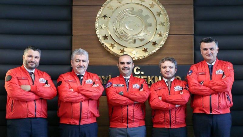 Sanayi ve Teknoloji Bakanı Mehmet Fatih Kacır, yeni atanan yardımcıları Oruç Baba İnan, Çetin Ali Dönmez, Zekeriya Çoştu ve Ahmet Yozgatlıgil ile kırmızı renkli Teknofest montlarını giyerek poz verdi.