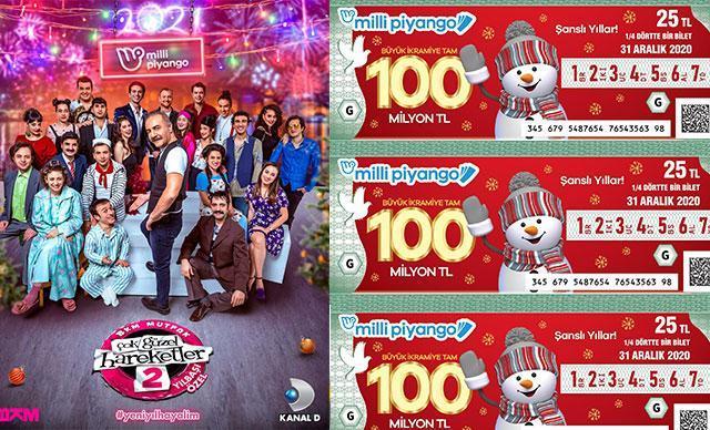 Yılbaşının geleneksel eğlence ruhunu ekranlara getirmeye hazırlanan “Çok Güzel Hareketler 2 Yılbaşı Özel Programı” içinde yer alacak olan canlı yılbaşı çekilişinin büyük ikramiyesi ise 100 milyon TL! 14.30’da millipiyangoonline.com ve Milli Piyango TV Youtube kanalından canlı yayınlamaya başlayacak olan yılbaşı çekilişinde büyük ikramiye satılan bilete çıkana kadar çekilişe devam edilecek. Büyük ikramiye, talihlisini o gece bulacak.