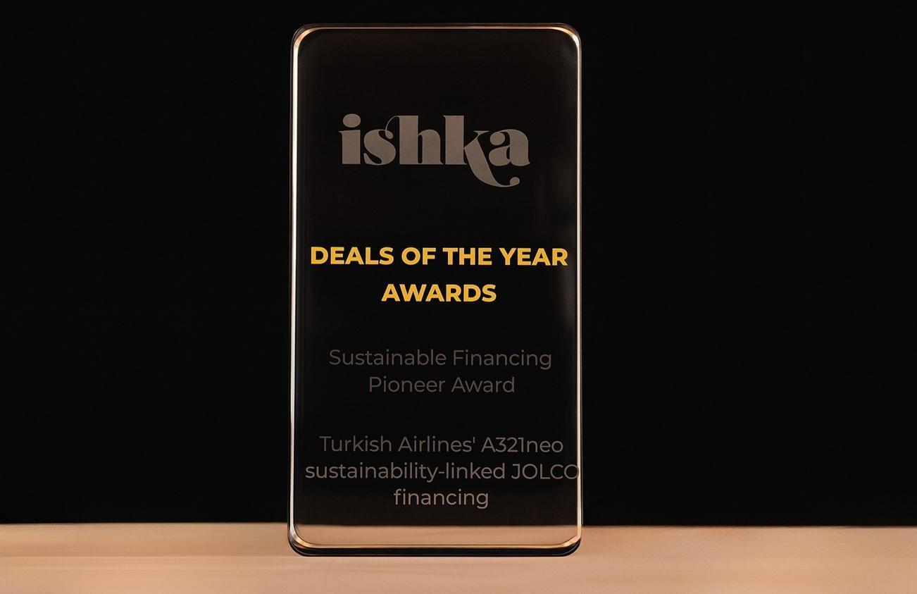Türk Hava Yolları (THY) iki adet yeni nesil Airbus A321 neo uçağının finansmanında ilk kez entegre ettiği yenilikçi finansman işlemi sebebiyle Ishka tarafından sürdürülebilir finansman öncülük ödülüne layık görüldü.