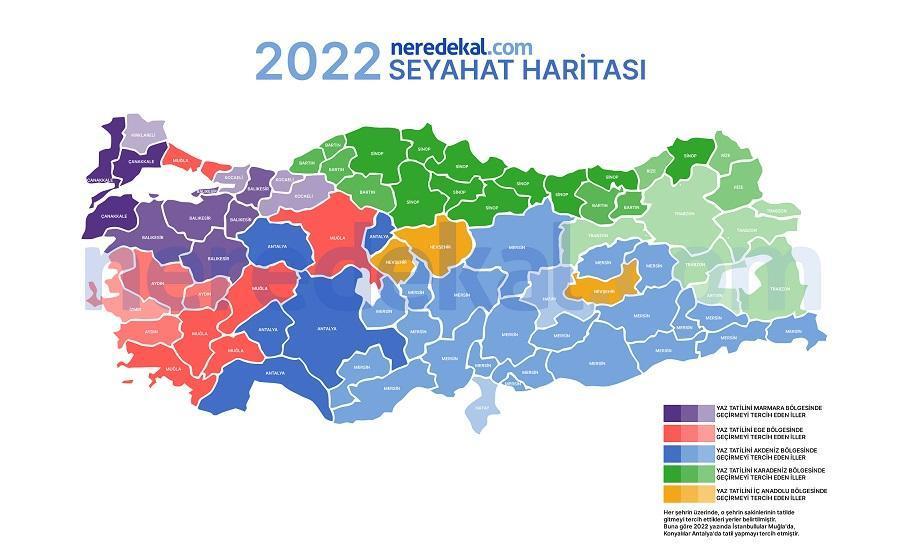 Pandemi kısıtlamalarının ardından hızlı bir yükseliÅŸe geçen ülkemiz turizminde bir yaz tatili sezonu daha geride kaldı. Türkiye, geçtiÄŸimiz üç aylık yaz döneminde de yurt dışından gelen turistlerin ilk destinasyonları arasında yer alırken, ülkemizin doÄŸasını, tatil köylerini, etkinliklerini keÅŸfetmek isteyen yerli turistler de yollara koyuldu. Otel ve villa arama platformu Neredekal.com ise kullanıcı verilerinden hareketle, odağına yerli turistleri alarak hazırladığı raporda 2022 yazının seyahat haritasını çizdi. Türkiye’nin farklı illerinde yaÅŸayan insanların rotalarına ışık tutulan çalışmada, farklı coÄŸrafyadaki kiÅŸilerin bu yaz en çok hangi bölgeleri tercih ettiÄŸi açıklandı.Â