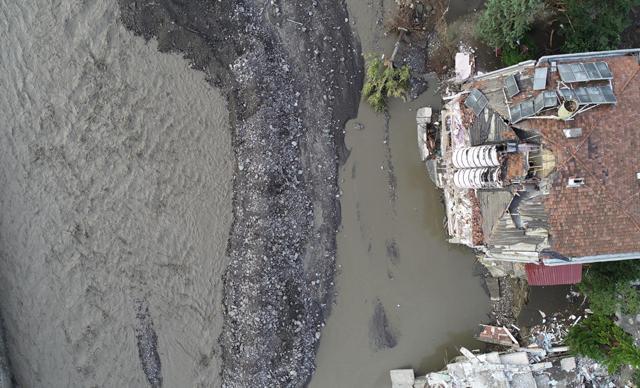Heavy rain in Kastamonu on Wednesday caused floods in Bozkurt, Azdavay, Pinarbasi, Kure, Inebolu, Cide and Abana districts. The Ezine stream, which passed through the Bozkurt district center, overflowed with the rain. The flood caused by the overflow of the stream swallowed the streets; houses and businesses were also flooded. Vehicles drifted as the water level rose up to 4 meters in some areas. The 8-storey Olcer Apartment, which was built 3 years ago and located on the edge of the Ezine Stream, was destroyed and the front facades of the 2 buildings next to it collapsed.