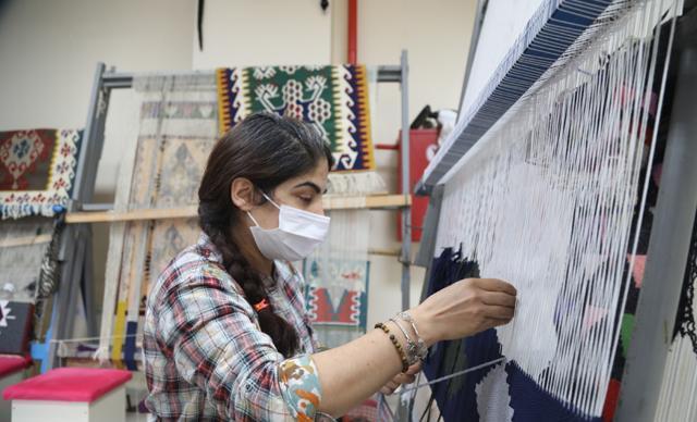 Housewives, who attend the carpet and rug weaving course given at cultural centers of Yuregir Municipality in Adana, turn the weaving they have learned into a source of income. Receiving training from master trainers, women both keep traditional handicrafts alive and contribute to the family economy.