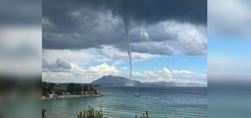 In Datca, a tornado occurred in the sea after a short rainstorm on Sunday noon. The tornado, which emerged at around 14:00 off the Greek island of Sombeki (Symi) in the Mediterranean, approached the shores of Datca after a while. The tornado then disappeared, heading towards the Aegean Sea, Gokova Bay, over the Goreme coast. The tornado, which lasted for about 10 minutes, was captured on mobile camera by the locals.