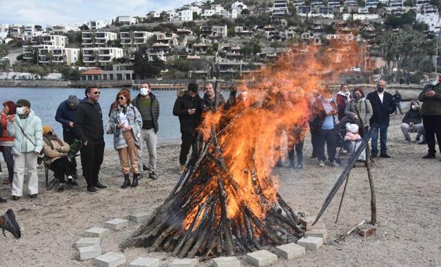 The festival of rebirth, known as Nartugan, is celebrated every year on December 21, when the longest night will be experienced. Within this scope, the Nartugan event was organized by the City Council Gundogan Working Group in Gundogan Neighborhood. The event started with a marching band in front of the symbolic Gundogan Nartugan statue. The marching band, accompanied by the citizens with applause, ended on the beach. A fire was lit on the beach in the event which attracted great attention. Participants in the celebration danced to the music around the fire. Citizens who tied colored cloth pieces to the symbolic tree of life made a wish. There were also local food, jewelry, and book booths at the event.