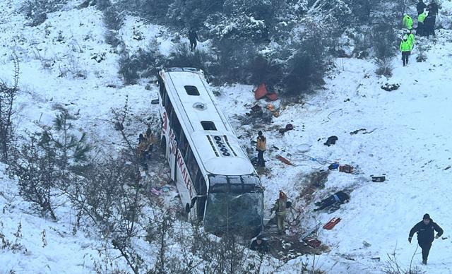 The injured were taken to the nearby hospitals by ambulances dispatched to the scene. On the other hand, the bus was lifted with the crane sent to the Northern Marmara Highway and it was checked whether there were passengers under the vehicle. Disaster and Emergency Management Presidency (AFAD) teams that arrived at the scene also participated in the searches. Northern Marmara Highway traffic teams took security measures to prevent a second accident in the region. Arriving at the scene Deputy Provincial Police Chief Mustafa Sasmaz, also examined the region. Those who lost their lives were taken to the hospital morgue. Crews continue to investigate the incident.