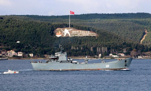 The warship named Orsk belongs to the Russian Navy passed through the Dardanelles and sailed towards the Sea of Marmara.