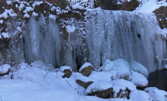 The waterfall and the stream in Kale Neighborhood froze as the air temperature dropped to 15 degrees below zero in Mus.