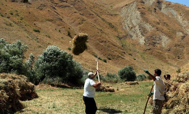 Mehmet Salih Arslan, one of the villagers, stated that they were able to bring down about a thousand hay bales per day from the summit to the village. Arslan said, "We wake up early in the morning and make our preparations. We also unload the bales that we hung on the hooks with the rope and pulley system. This work takes 1 or 1.5 months."