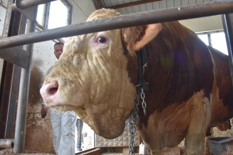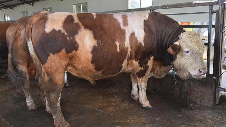 3 yaşına gelen 'Aslan' isimli boğa, 1 ton 250 kilogram ağırlığıyla Kurban Bayramı için satılmayı bekliyor. Mehmet Kars, 255 bin TL'den satışa çıkan 'Aslan' isimli boğayı buğday, fiğ, yulaf, arpa ve mısırdan oluşan yemle beslediğini belirterek, "Öncelikle buzağıyken yaşı dolana kadar sütten kesmiyorum.