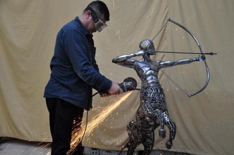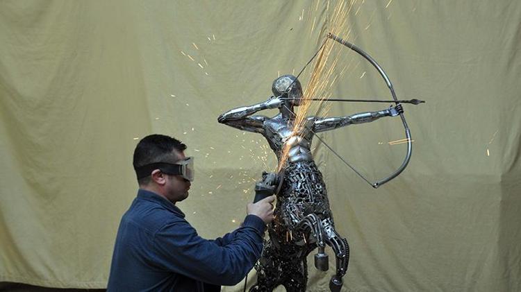 10 bin parça hurda ile yaptığı 'Sentor' adlı heykelinin gelirini depremzedelere bağışlayacak