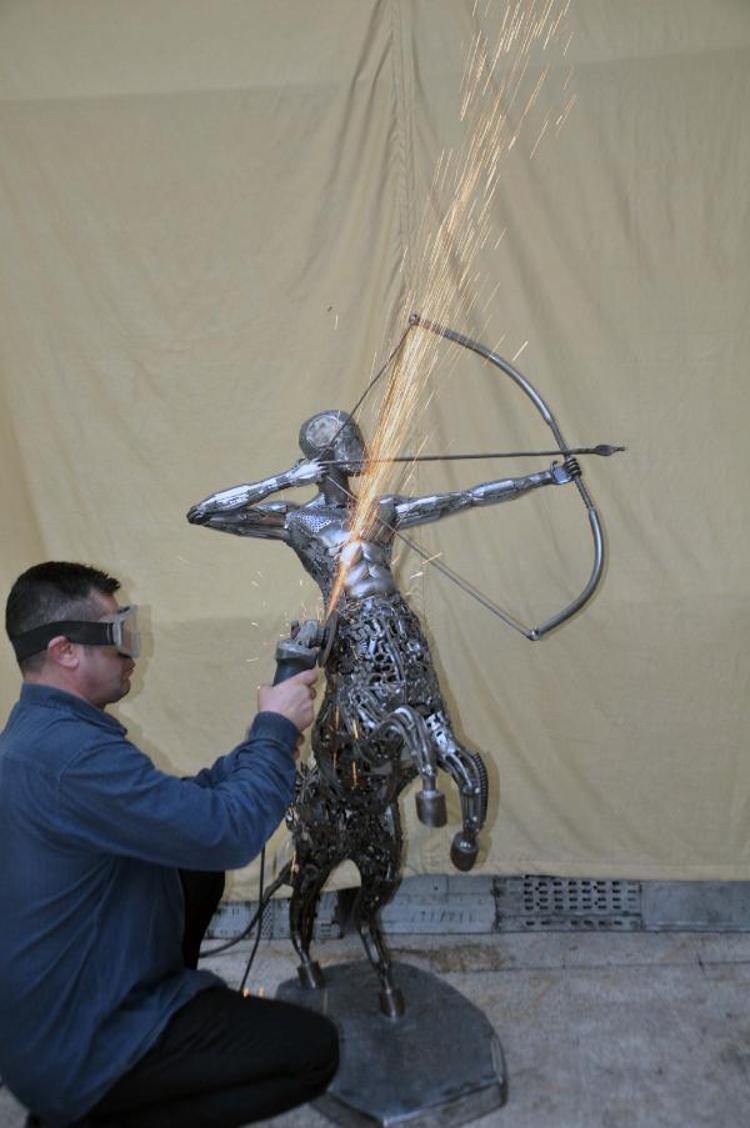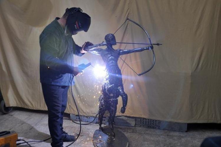 Heykele Yunan mitolojisinde gücü temsil ettiği için 'Sentor' adını veren Mervan Altınorak, eserini 1,5 ayda tamamlandığını anlattı.