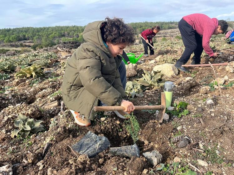 Öğrencilerden Emir Berke Aydın (11) da "Fidan dikmek çok güzel bir duygu. Ormanlarımız ve çevremiz güzelleşiyor. Dünyaya her gelen insan fidan dikmeli. Bence bugün hem Makbule Alkan'ın hem de okulumuzun doğum günü. Fidan dikerek doğum gününü kutlamış olduk. Kendisine sevgilerimi iletiyorum" diye konuştu.